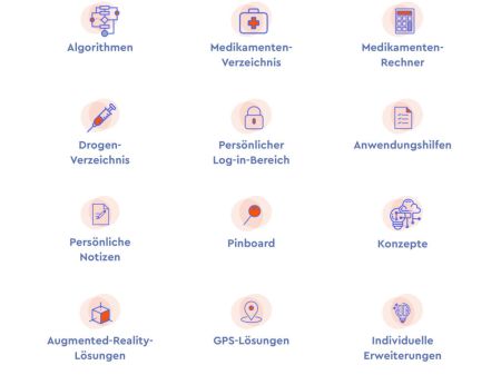 Die App kann Algorithmen, Medikamente, Drogen, Anwendungshilfen, Konzepte und vieles mehr abbilden und durchsuchen.